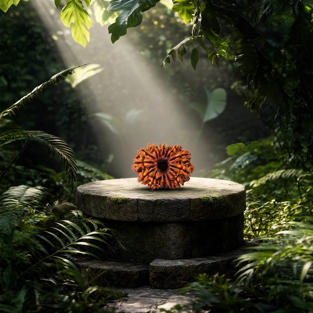 The 15 Mukhi Rudraksha supports emotional healing and self-awareness. Identified by fifteen lines, it helps release emotional dependency.